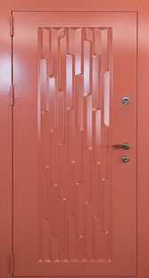 Входная дверь со штампованным рисунком и красным полимерным окрашиванием КД-1354